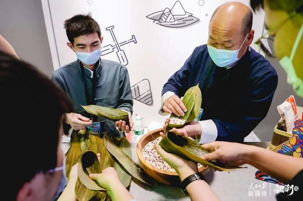 在此屆“有間國(guó)潮館”上,五芳齋邀請(qǐng)了國(guó)家級(jí)非物質(zhì)文化遺產(chǎn)保護(hù)項(xiàng)目——五芳齋粽子制作技藝代表性傳承人胡建民,現(xiàn)場(chǎng)親手展示裹粽技藝、教授裹粽技巧,眾多現(xiàn)場(chǎng)參觀伙伴一起學(xué)習(xí)裹粽子。五芳齋品牌方更歡迎參觀者挑戰(zhàn)裹粽技藝,挑戰(zhàn)成功者即可收到五芳齋送上精心準(zhǔn)備的端午好禮。
