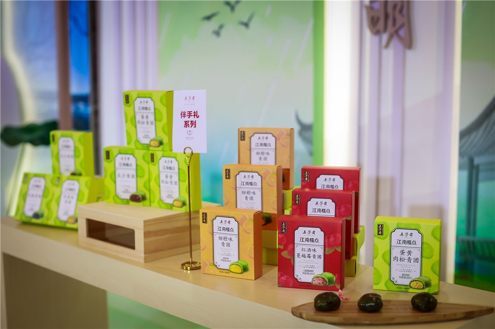 現(xiàn)場(chǎng),五芳齋更是通過(guò)一場(chǎng)精致的漢服盛宴,以世紀(jì)芳華禮盒為載體,演繹非遺文化精粹,過(guò)端午,食“新五黃”,古法釀造黃酒、醬黃瓜、黃魚(yú)鰲、蟹黃醬、鮮咸蛋黃醬,匯聚中華好味道。