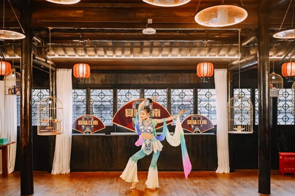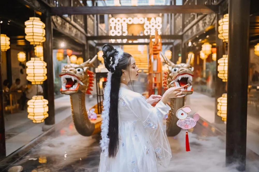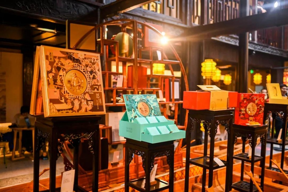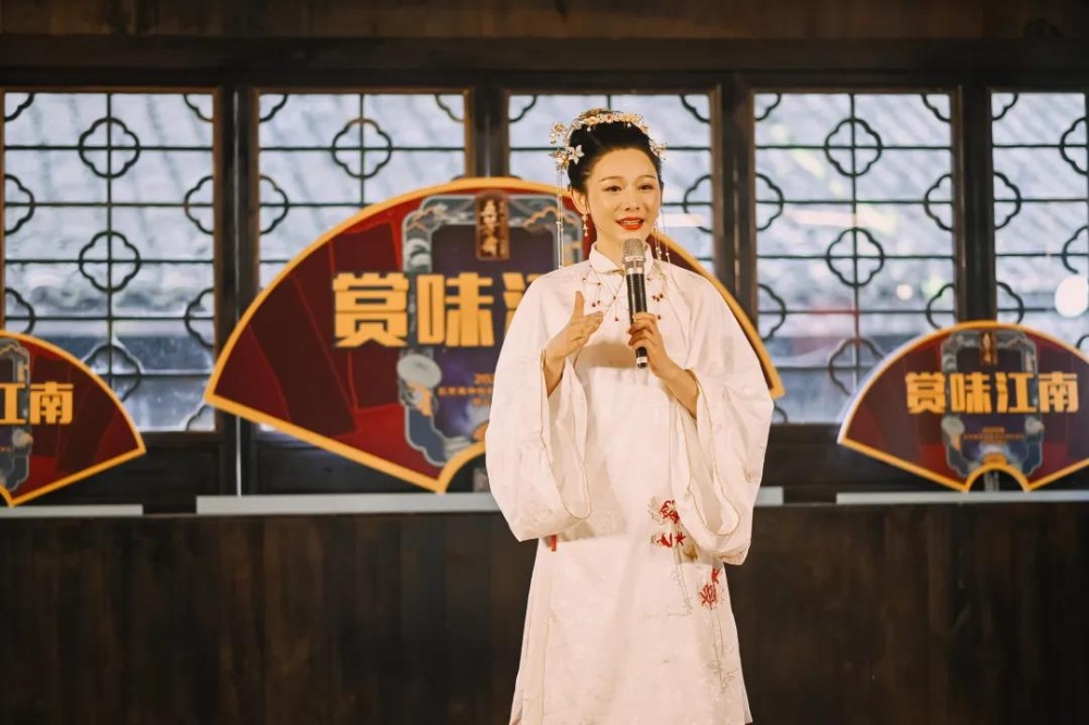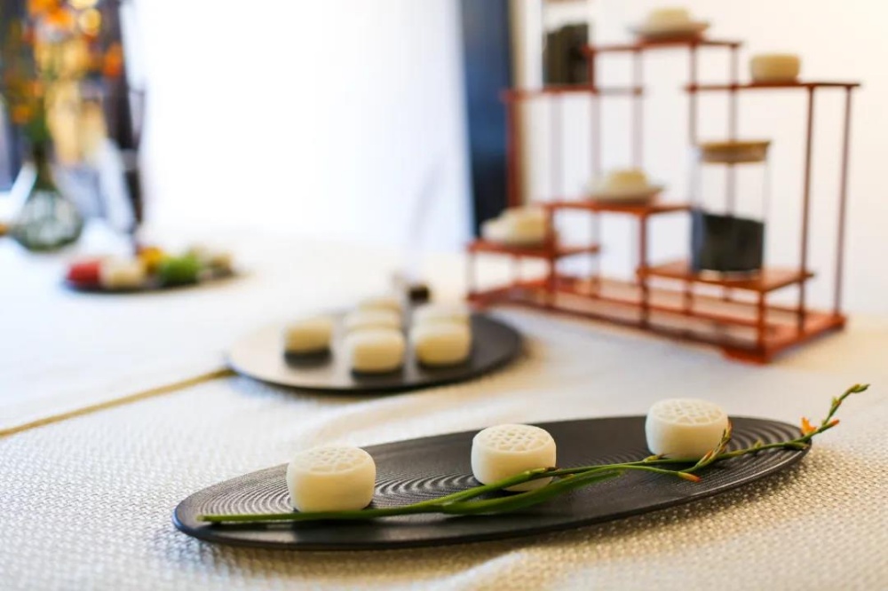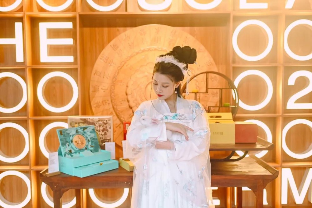 在五芳齋2020中秋新品沉浸私享會暨云直播會的現場,大紅燈籠春風蕩,小橋流水棲鴦,緩緩流淌的江南絲竹樂,一舞飛天攬月裙裾飄飛拉開了本次活動序幕。現場不僅為全國所有伙伴直播帶來五芳齋2020中秋新品系列首秀,更是邀請到古色古香的漢服秀表演,與五芳齋2020中秋季新品完美融合,全場嘉賓沉浸在江南水鄉溫柔光景之中,一場無與倫比的盛宴就此展開。