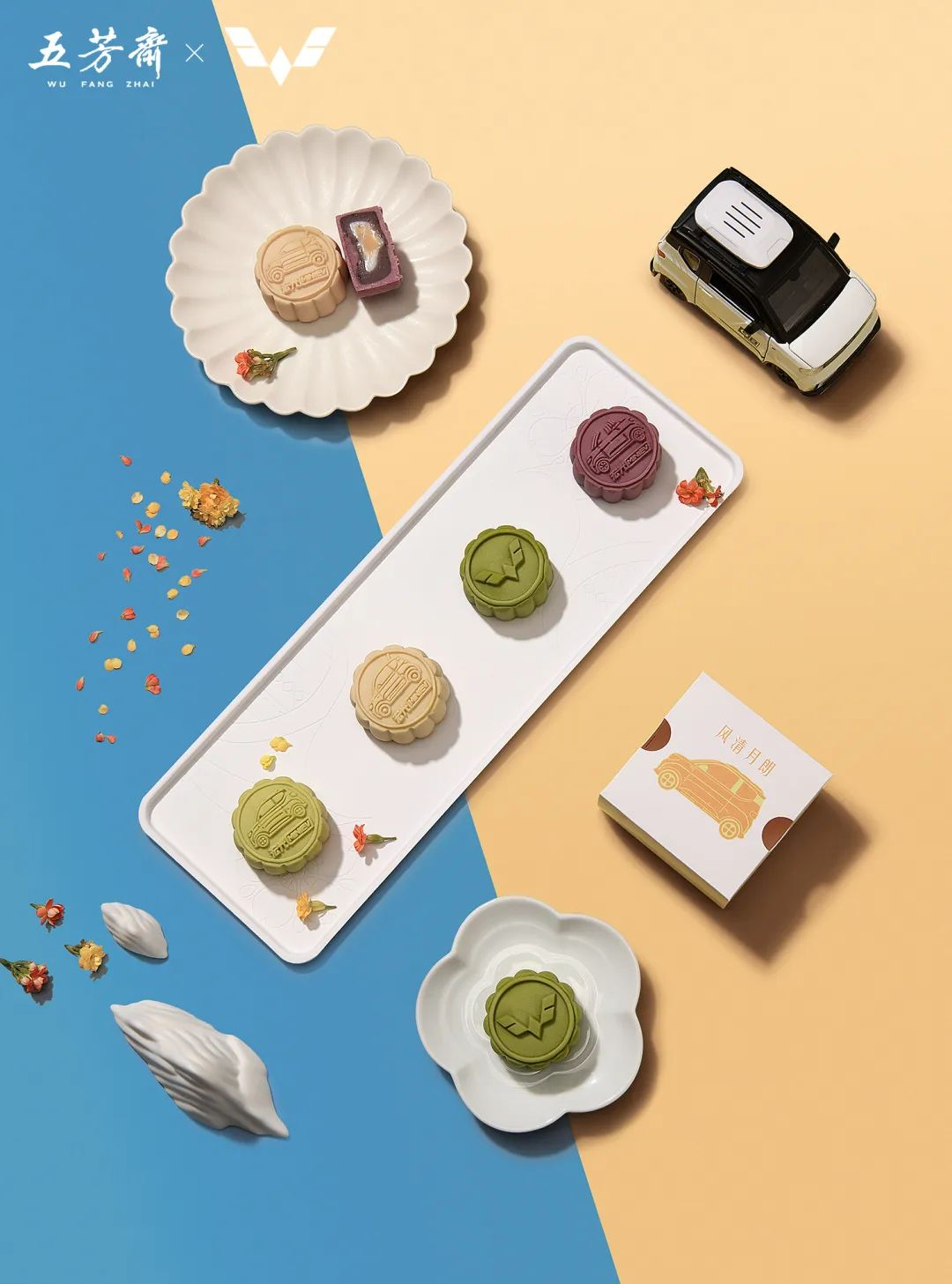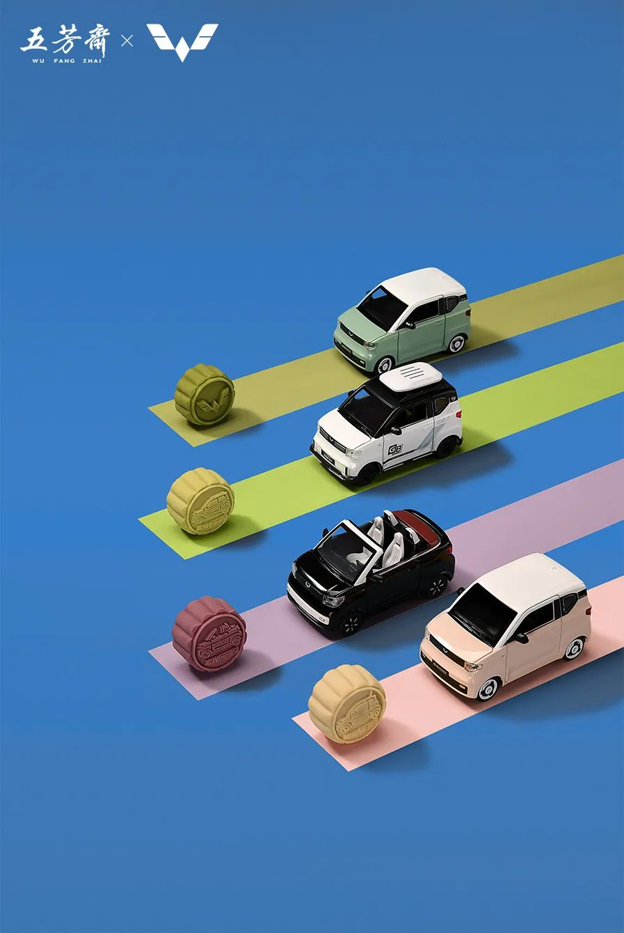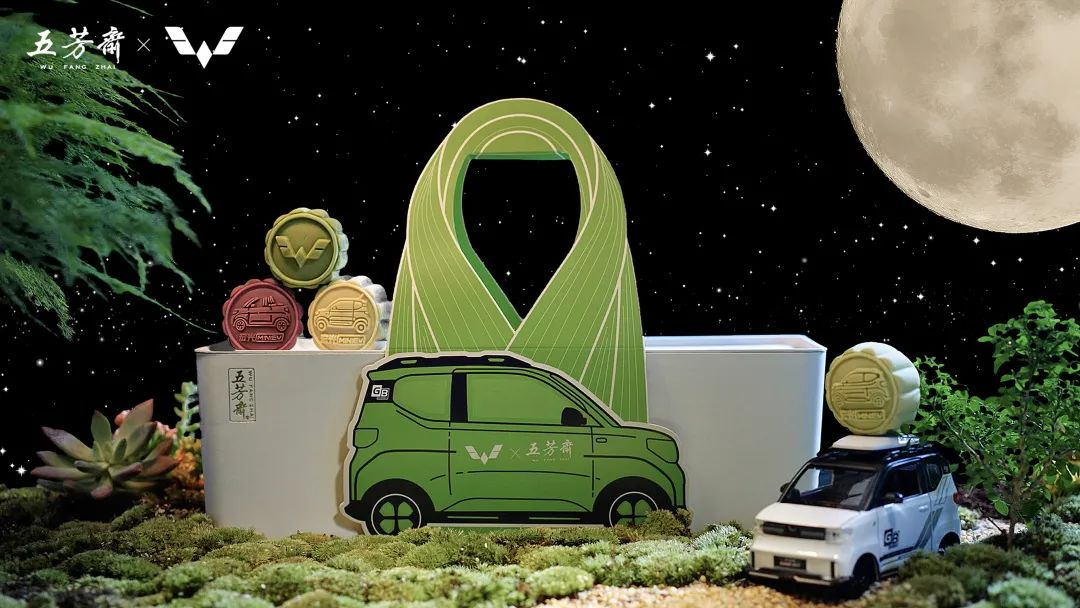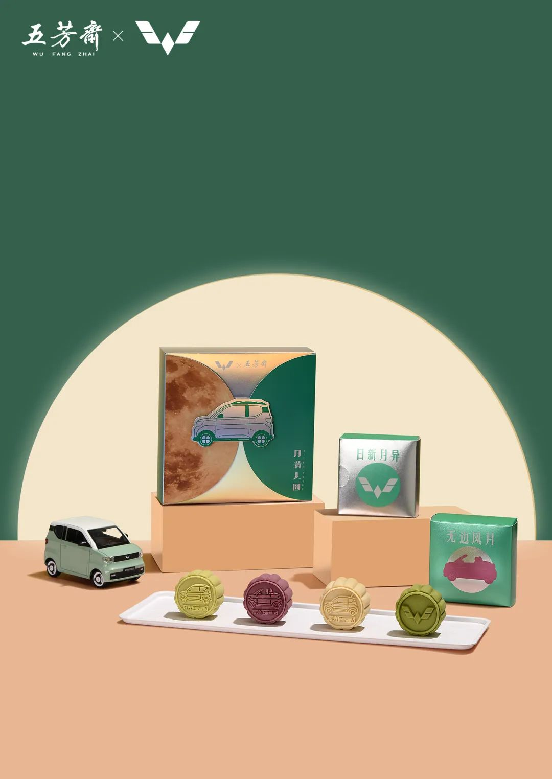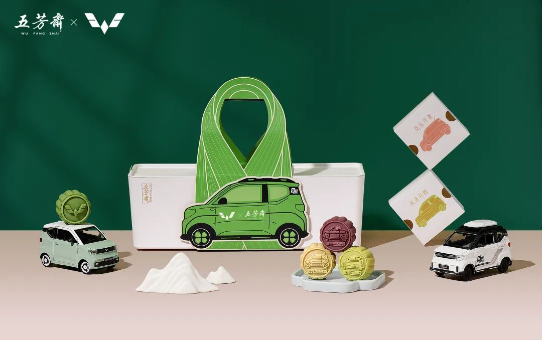 2022年中秋季,五芳齋攜手五菱帶來兩款聯名月餅禮盒——宏光MINIEV追月中秋月餅禮盒和宏光MINIEV逐光中秋月餅禮盒。