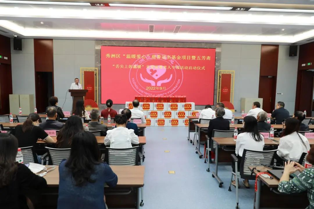 9月29日,秀洲區“溫暖愛心”慈善冠名基金項目暨五芳齋“舌尖上的溫暖”關愛困難老人專項活動啟動儀式在五芳齋總部圓滿舉行。秀洲區慈善總會會長沈鳳興,秀洲區慈善總會常務副會長、區民政局局長高峰,五芳齋黨委書記、實業副董事長魏榮明等出席活動。