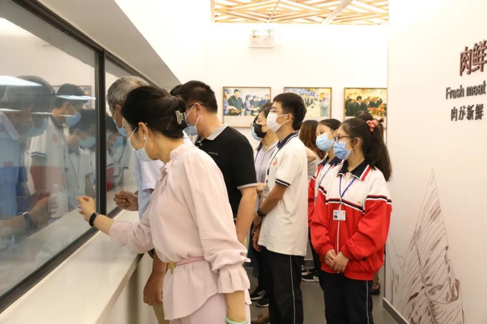 在參觀粽藝長廊時,同學們了解到了粽子的生產過程。簡簡單單的一只粽子,在來到大家的餐桌上之前,需要經過米預處理車間、肉預處理車間、包粽子車間、燒煮車間、涼粽車間、速凍車間、真空包裝車間的處理。