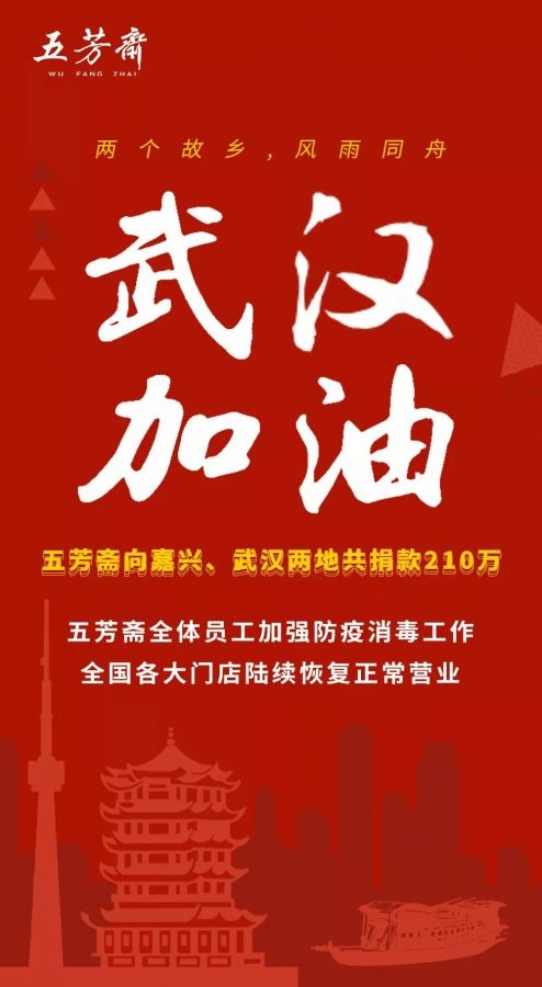 與你同在,五芳齋疫情預防措施全面升級! 2020-02-03 00:00:00 浙江五芳齋實業股份有限公司 瀏覽次數 20936 攜手同心,同舟共濟!齊心協力,共克時艱!五芳齋,一直都在你身邊!1月21日,我們第一時間啟動防控預案,率先下發了《關于門店做好防范新型病毒工作的通知》,要求門店做好員工培訓工作,重視疫情發展現狀,嚴格執行消毒操作,全面抓好各項防控措施。掌握員工尤其是湖北員工的身體狀況,建立好相關聯絡機制,做到密切關注、及時上報。與此同時,我們也緊急采取行動,為了讓全國所有五芳齋門店的消費者可以安心到店消費,也為了每一位五芳齋員工有安全健康的工作環境,我們對五芳齋各門店進行了門店預防措施全新升級! 門店:全面消毒 防護升級五芳齋各門店店內消毒全面升級,定期對店內所有公共接觸面進行消毒:包括收銀臺、出餐臺、桌椅、門把手、地面、洗手間等。 員工:上崗前測量體溫五芳齋所有門店員工上崗前均進行體溫測量和記錄,如有異常或有發燒或感冒癥狀,立即暫停服務就醫。勤洗手 勤消毒各門店均配備消毒洗手液,五芳齋的各位員工每隔30分鐘進行洗手和消毒。隔離病毒,不隔離愛除了做好門店、員工的防護措施,五芳齋還通過各種渠道為抗擊疫情一線人員提供支援,在嘉興、上海、杭州、武漢等地,通過向一線醫護人員、隔離人員提供餐食等舉措,幫助他們共同抗擊疫情。現在正是疫情防控的重要時刻。五芳齋在此呼吁:當您進入公共場所時,戴口罩、勤洗手、少出門,少一次聚會,多一分安全。重視防護,共克時艱!艱難時刻,我們在一起!2020年2月3日起,五芳齋全國門店陸續恢復營業,五芳齋持續關注疫情,武漢加油!中國加油! 上一條生命重于泰山、疫情就是命令、防控就是責任 下一條中秋公益行?美味暖人心——五芳齋幸福傳遞助學活動圓滿成功!